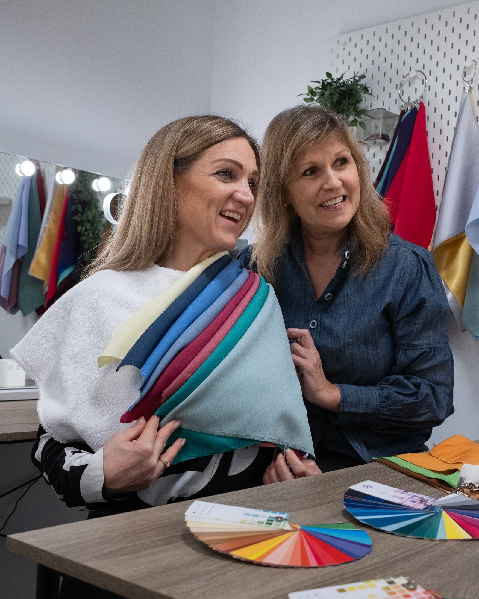 Du sitter foran speil mens vi legger ulike farger (drapes) foran på brystet